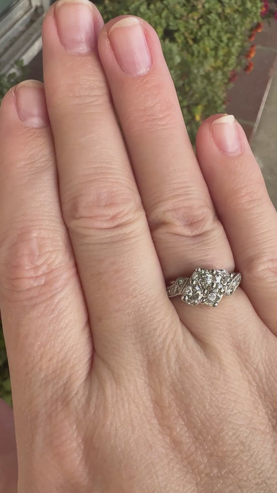 Old European Cut Diamond Cluster Bypass Ring in 14k White Gold